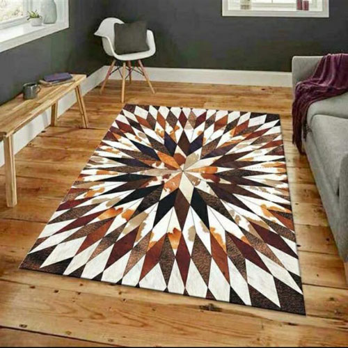We have gone a long way in this field starting from simple patch work in single colours, to making modern designs using various colours of hides to using dyed hides and metal work on our leather carpets. Our hair-on leather carpets represent a distinctive class and elegance in terms of workmanship and finish. We use suede leather as backing to make our leather rugs 100% natural product.